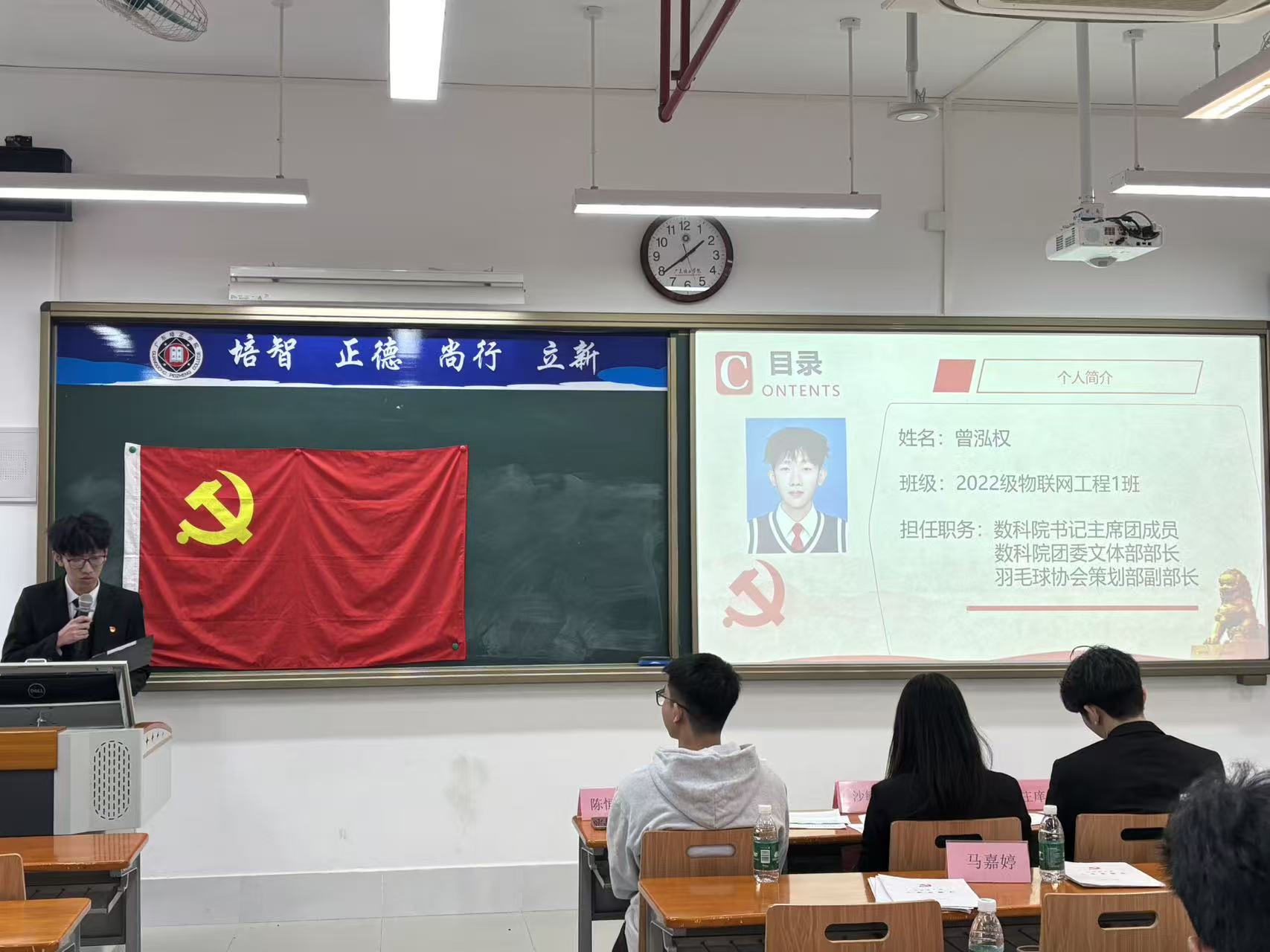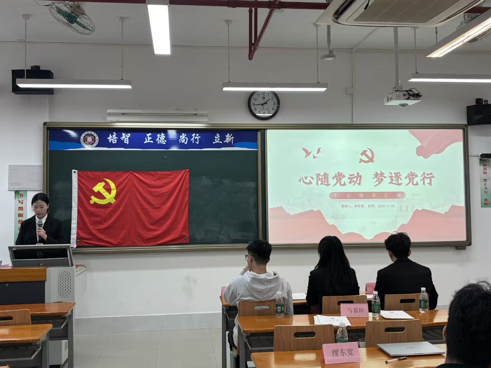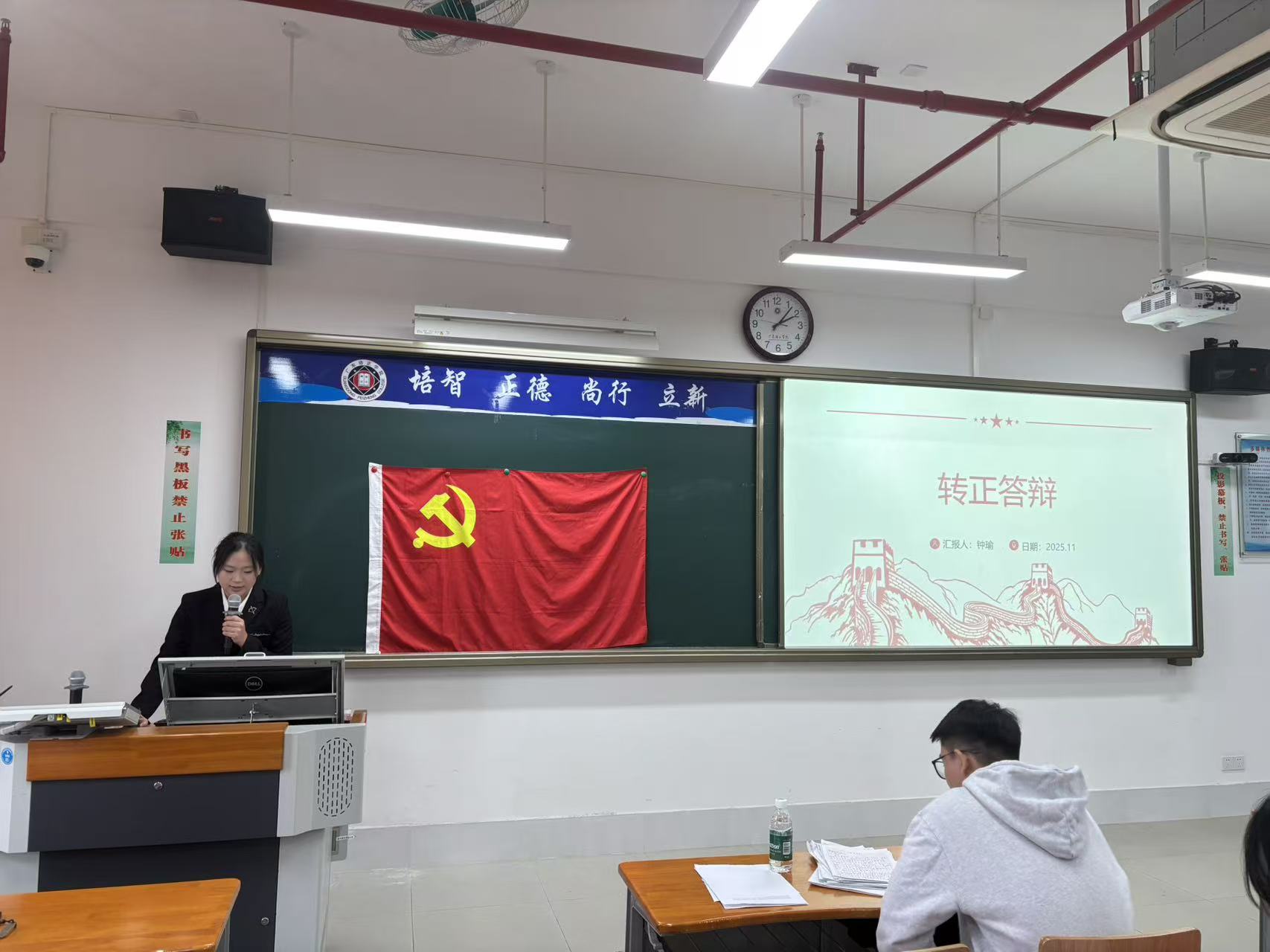本网讯(数据科学与计算机学院党委学生第一党支部刘嘉嘉)为进一步加强党组织建设,壮大党员队伍,激发全体党员的使命感与责任感,2025年11月22日,数据科学与计算机学院党委学生第一党支部在第五教学楼404课室召开了2025-2026学年第一学期预备党员转正大会。本次大会旨在讨论并表决赵建文等11名同志的转正事宜。