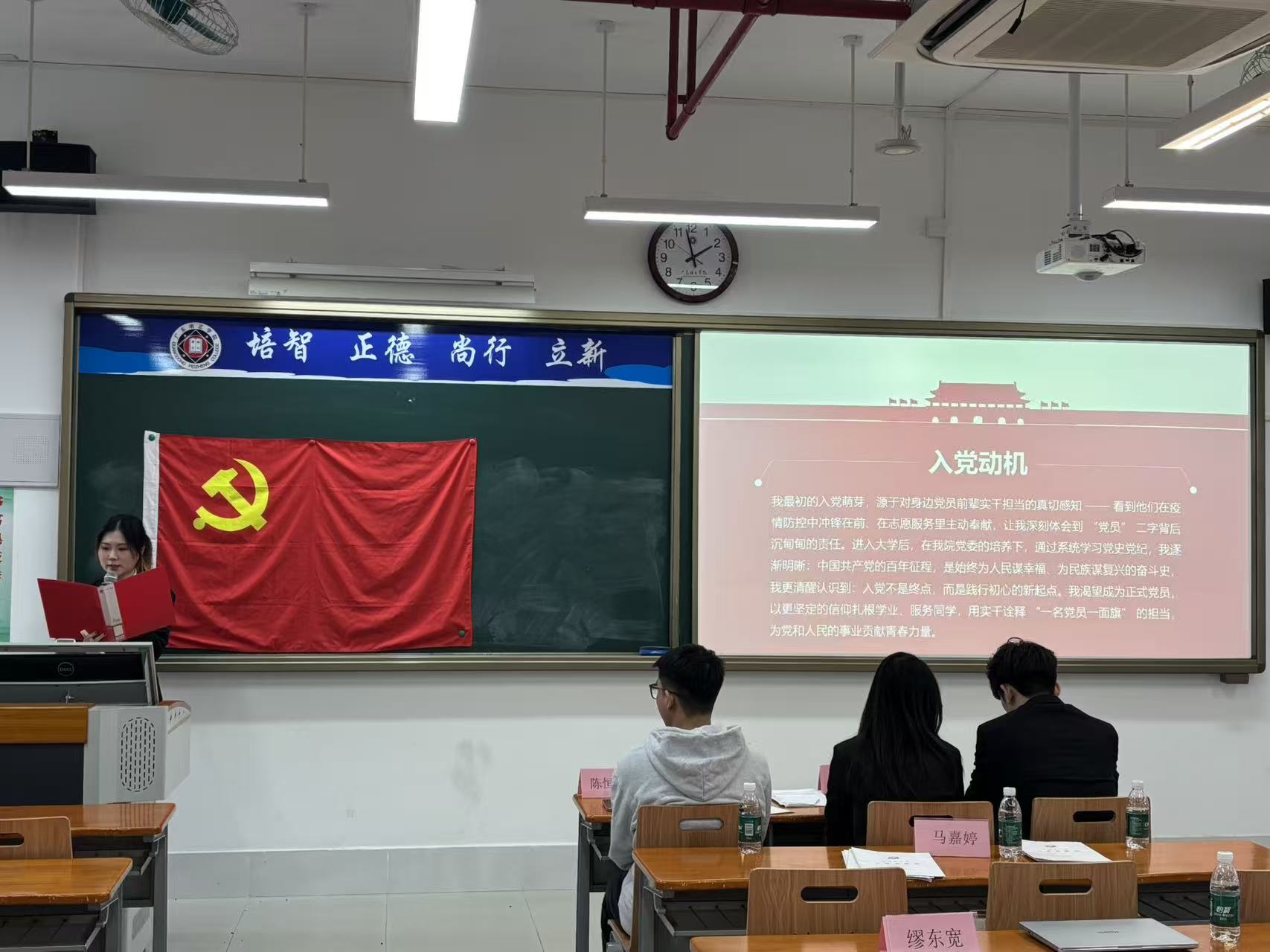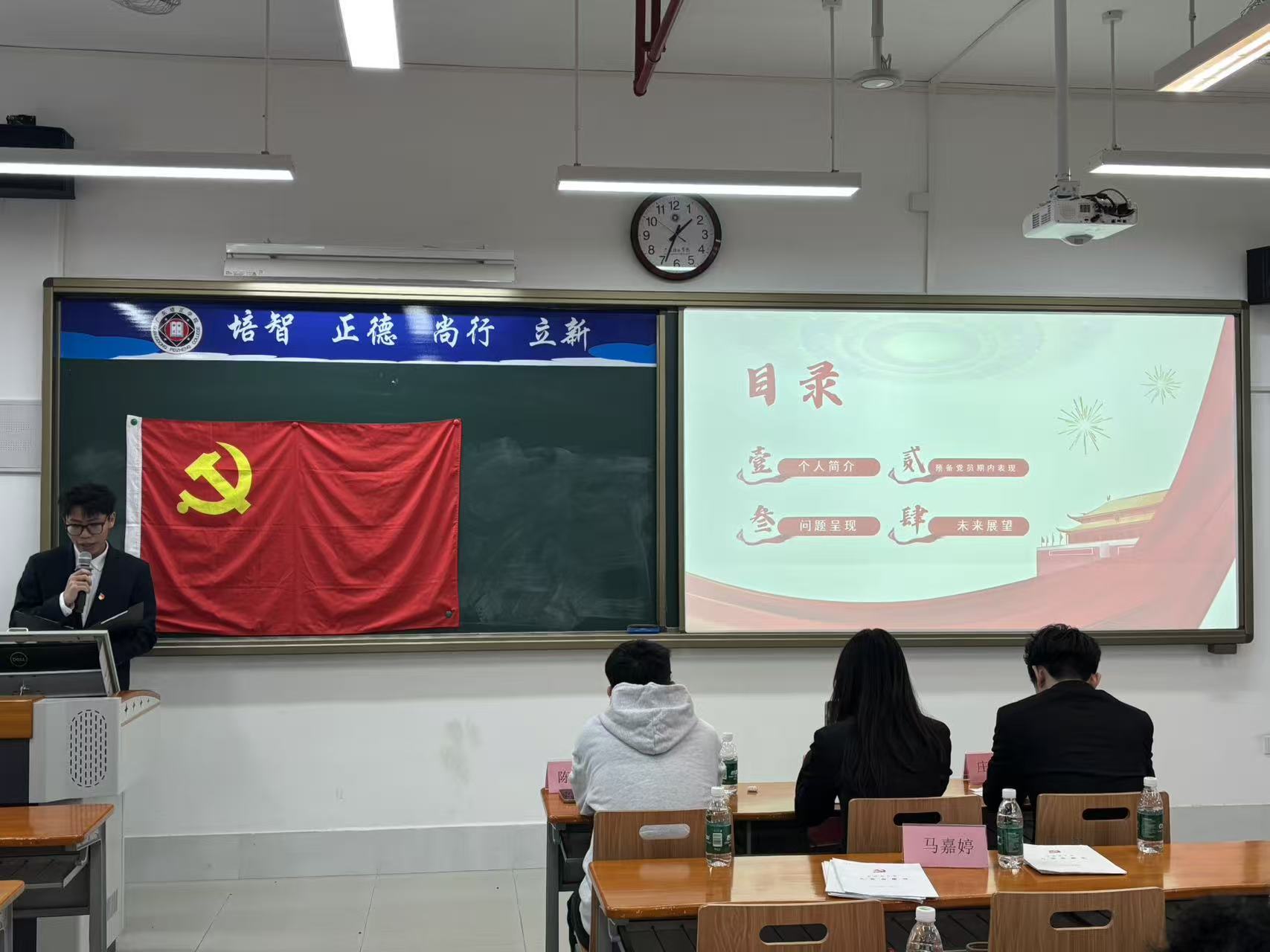 赵建文等11名预备党员依次走上讲台,郑重提交转正申请,并围绕预备期内的思想觉悟、学业科研、志愿服务、工作实践等方面作详细汇报。他们分享了在党支部培养下,从理论学习中坚定理想信念,在志愿服务、乡村振兴调研、校园文明创建等实践中锤炼党性的成长历程,坦诚剖析了自身存在的不足,并表达了愿为党的事业贡献青春力量的坚定决心。