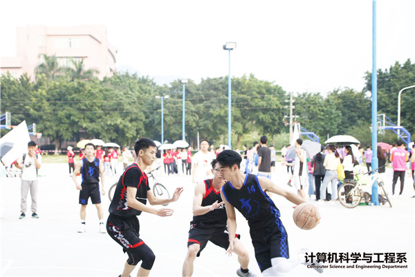 (资讯部 报) 2019年4月25号下午5:20,计算机科学与工程系与外国语学院的系际篮球赛于我校南区第三饭堂前的第一号篮球场拉开帷幕。
