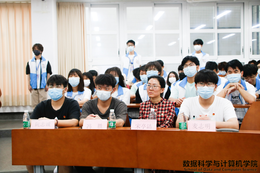 出席本次学习解读会议的嘉宾有:数据科学与计算机学院团委书记兼学生会指导老师宋亭洁老师, 第三届数据科学与计算机学院团委副书记阮志诚师兄,第三届数据科学与计算机团委副书记兼学生会执行主席冯胜师兄,第三届数据科学与计算机学院学生会执行主席麦志明师兄。