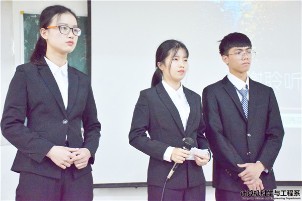 出席本次评优答辩的嘉宾有:第十一届计算机科学与工程系团总支副书记刘钰婷、第二副书记兼办公室主任李颖怡、学生会主席罗超育、秘书长曾敏华。本次答辩会的评委有:第十二届计算机科学与工程系团总支副书记罗华青、团总支第二副书记邹美红、团总支办公室主任兼学生会副主席肖晨、学生会主席陈智茗、学生会秘书长林嘉惠。
