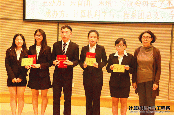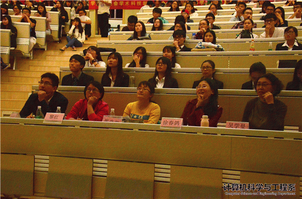 (资讯部 报)2016年11月8日星期二19点整,计算机科学与工程系在学术报告厅举办了第九届电脑节决赛。出席此次决赛的嘉宾有:计算机科学与工程系党总支副书记兼办公室主任侯崇富老师,计算机科学与工程系团总支书记兼学生会指导老师宋亭洁老师,计算机科学与工程系大一兼大二辅导员罗佳蕾老师,计算机科学与工程系潘光洋老师、黎红老师、吴学曼老师、徐春鸽老师和崔彦君老师。