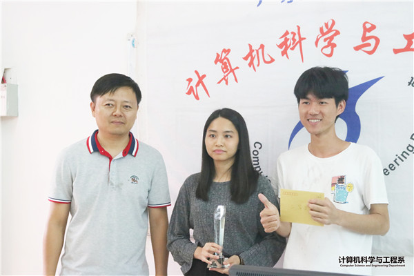 经历了一个多小时的思考与作答,本次比赛圆满结束。最后,由主持人宣布本次比赛最终名次,并由庄小妹老师和徐光明老师颁发奖杯。