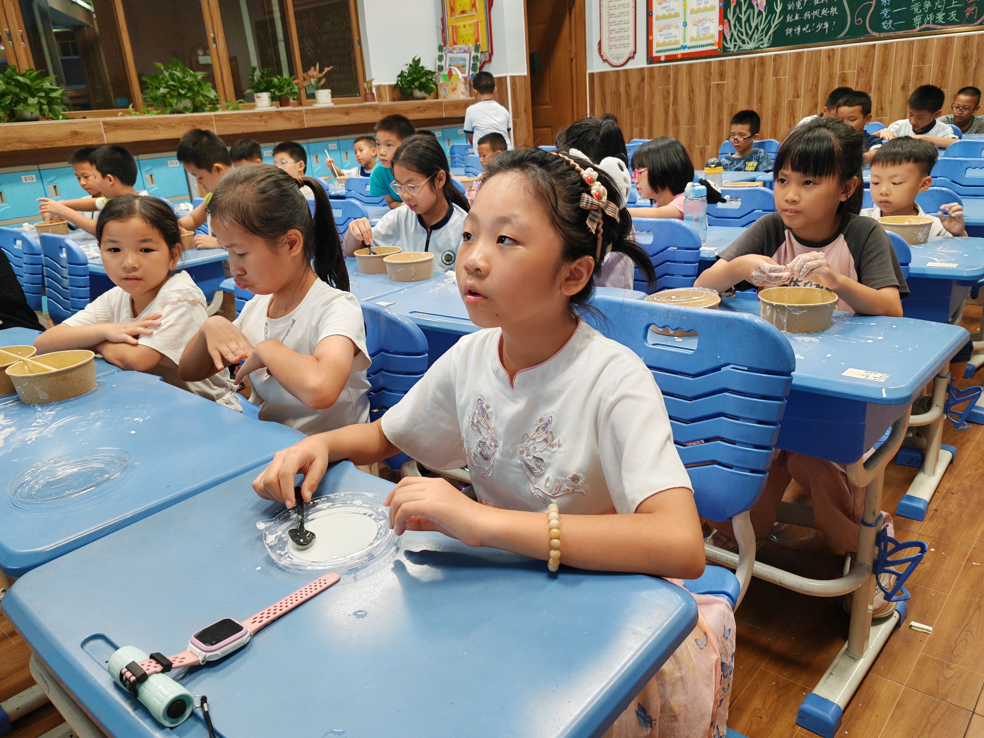 晚上六点 依旧是支教组的授课时间。小叶老师和椰子老师分别给同学们带来了《海洋知识小科普》和《非牛顿液体》两节课程。