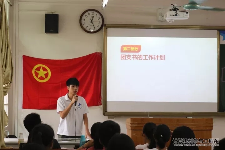 (资讯部 报)2017年9月29日12:20,在我校第三教学楼101课室召开了计算机科学与工程系2017~2018学年第一学期第一次团支书会议。本次会议出席的嘉宾有计算机科学与工程系团总支副书记刘钰婷、会计学系团总支组织部部长曾海军、副部长古文琪。