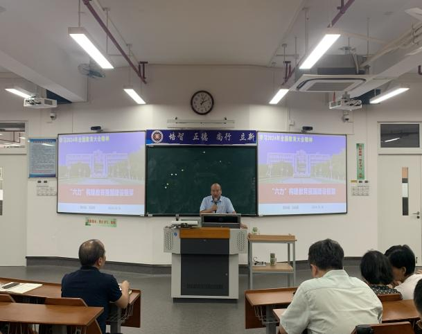 专题学习会上,刘远辉书记传达了学校关于学习贯彻全国教育大会精神的部署要求。同时,亲自领学了习近平总书记在全国教育大会上的重要讲话精神。他从“六力”构建教育强国建设框架出发,借用数据和案例,为我们重点阐述了“六力”的主要内容(我们要建成的教育强国,是中国特色社会主义教育强国,应当具有强大的思政引领力、人才竞争力、科技支撑力、民生保障力、社会协同力、国际影响力,为以中国式现代化全面推进强国建设、民族复兴伟业提供有力支撑)。另外,刘书记还为我们阐明了“六力”提出的重要历史意义和政治价值。他强调,习近平总书记以“六力”凝练了教育强国的科学内涵,充分彰显了新时代新征程推进教育强国建设的总要求,充分体现了全面提高教育治理体系和治理能力现代化水平的总目标,为建设中国特色社会主义教育强国指明了前进方向、提供了根本遵循。刘书记希望我们全体教师要进一步加强学习,强化师风师德建设,努力提高教学质量与教学水平,为培养德智体美劳全面发展的社会主义建设者和接班人而奋斗!