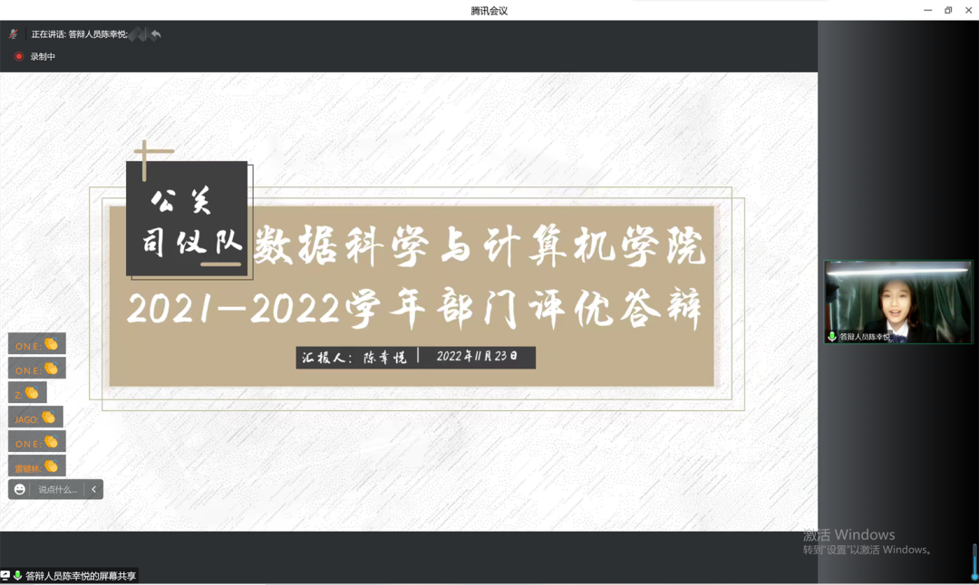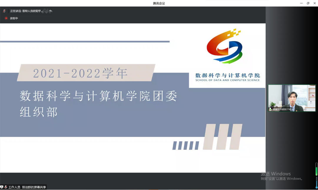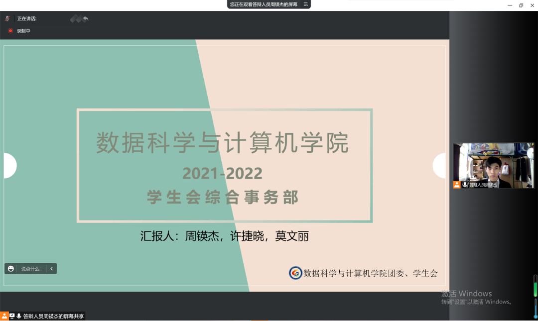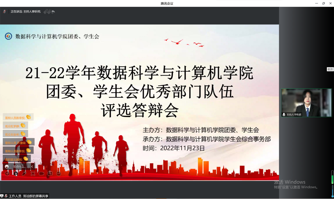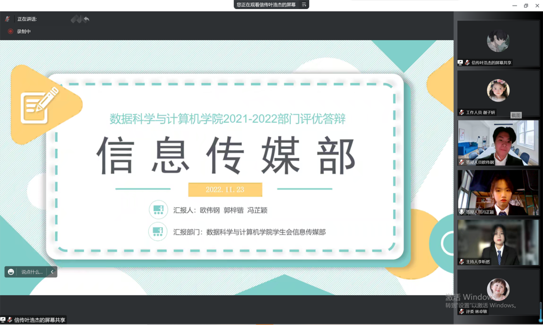 2022年11月23日下午14:00,数据科学与计算机学院2021-2022团委、学生会优秀部门、队伍评选答辩会在线上顺利召开。