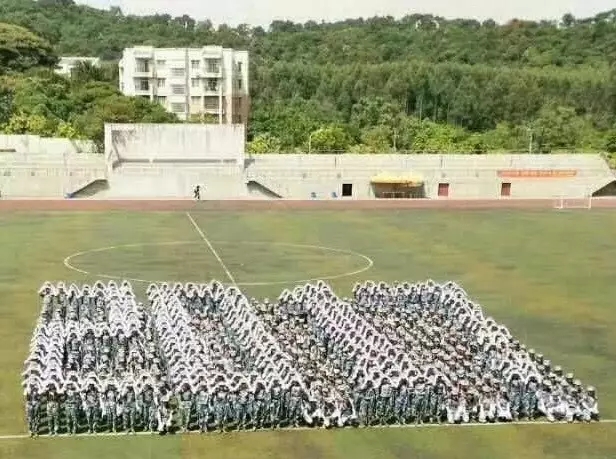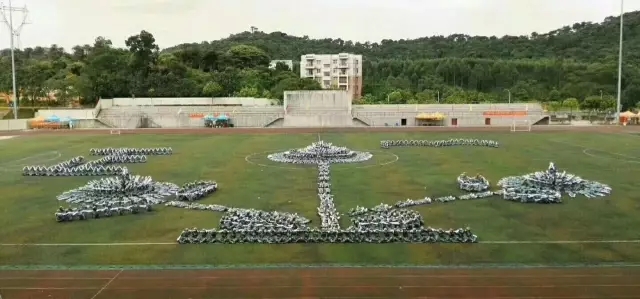 花样表演队有一部分我系八营的人员和六营全部人员组成,在摆完成各式各样富含寓意的图案后,摆出了2017的字样和校徽,众人用洪亮的声音讲出了对培正的祝福“愿培正2017前程似锦,锦上添花”,最后双手化作白鸽由下向上飞起,放飞我们的大学梦,强军梦。