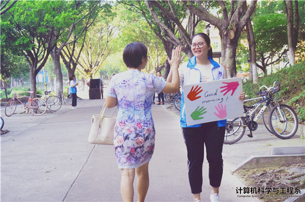 (资讯部 报) 2017年10月12日7:00,计算机科学与工程系于北区二饭门口至三教的校道开展了第二天的“Give me five”击掌接力公益活动。