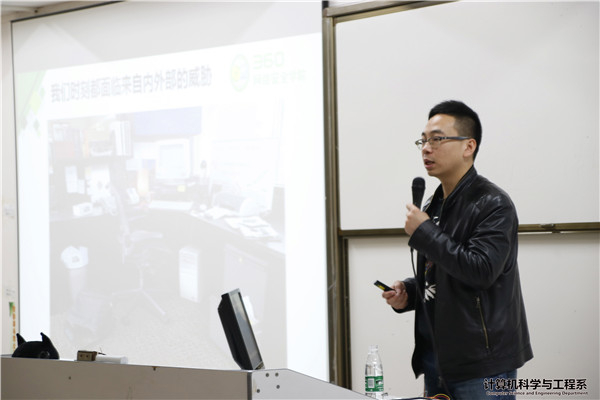 出席本次讲座的嘉宾有:计算机科学与工程系党总支副书记兼系办公室主任侯崇富老师,庄小妹老师,秦维佳教授,以及来自360网络安全学院运营中心的周海云老师和黄浩老师。