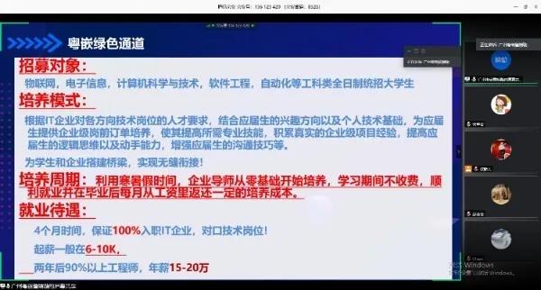 招聘会第二项,由企业代表依次进行宣讲,参加本次空中招聘宣讲会的企业有:广州粤嵌通信科技股份有限公司、广州盛富和科技有限公司、广州锦行网络科技有限公司、广州云图动漫设计股份有限公司、广州恒帝信息科技有限公司、广东新途信息技术有限公司、广东枝豆文化投资集团有限公司、广州东软睿道教育信息技术有限公司、广州漫游计算机科技有限公司、广州腾科网络技术有限公司共十家校企合作单位,来自我们企业的代表和招聘专员结合自己公司的历史文化、岗位需求、薪酬待遇以及未来发展等一一向同学们介绍宣讲,和同学们分享了在求职中的一些技巧,并鼓励感兴趣的同学要大胆投递简历。