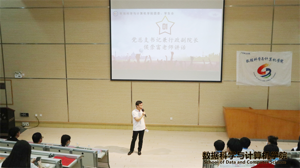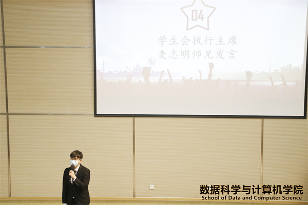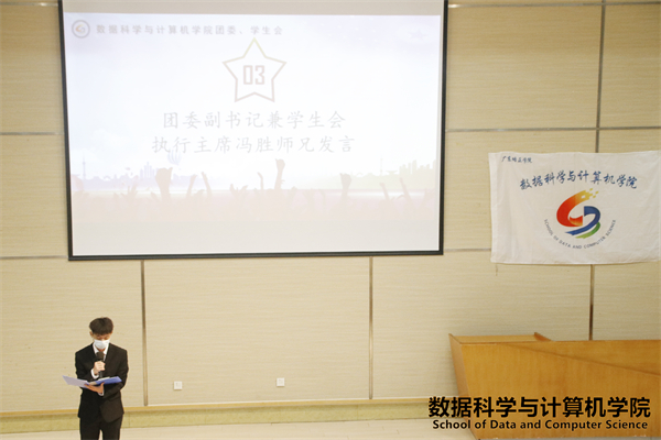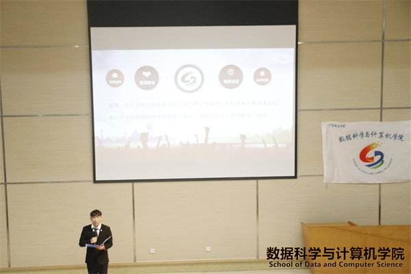 出席本次大会的嘉宾有:数据科学与计算机学院党总支书记兼行政副院长侯崇富老师、数据科学与计算机学院团委书记兼学生会指导老师宋亭洁老师、第三届数据科学与计算机学院团委副书记阮志诚师兄、第三届数据科学与计算机学院团委副书记兼学生会执行主席冯胜师兄、第三届数据科学与计算机学院团委办公室主任高桂金师姐、第三届数据科学与计算机学院学生会执行主席麦志明师兄。