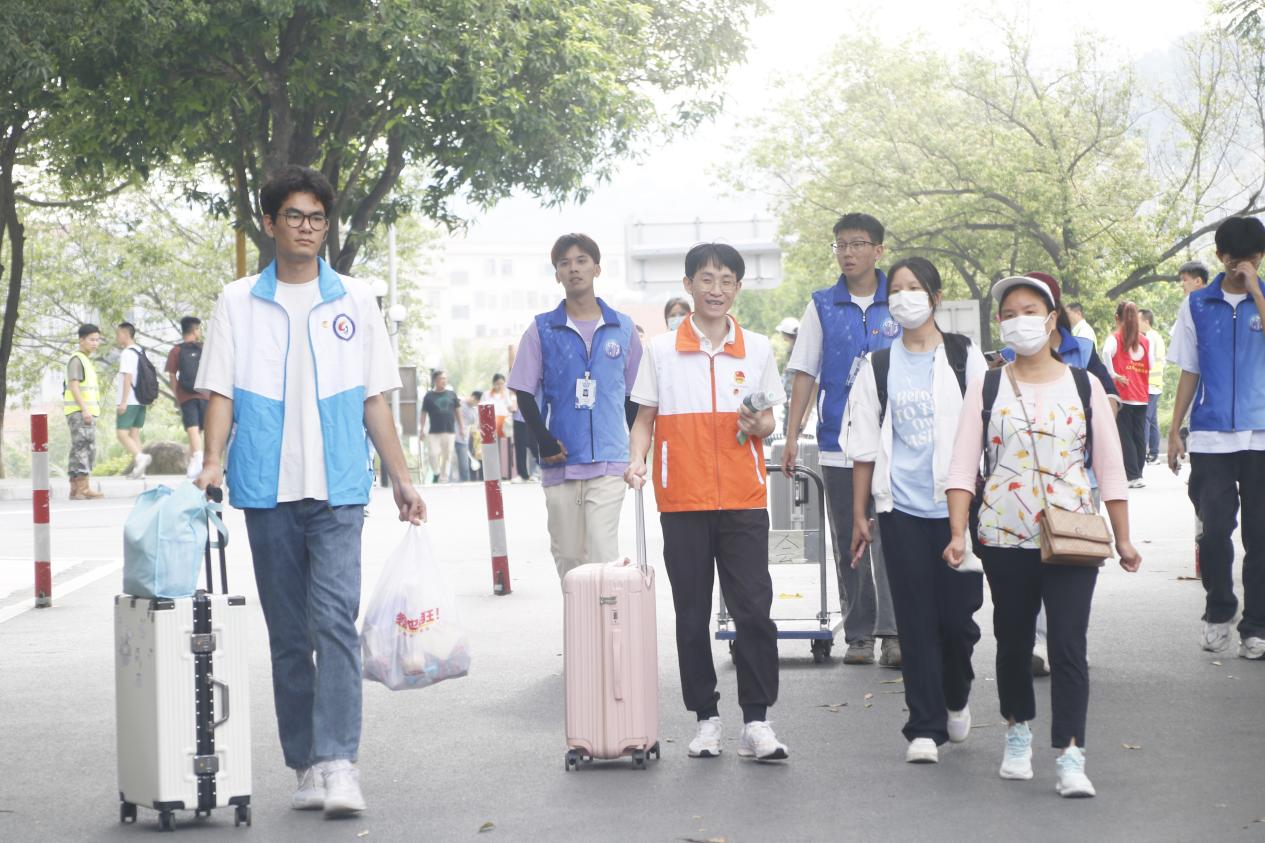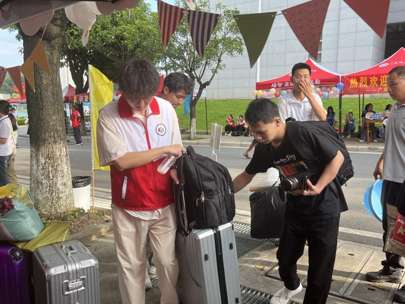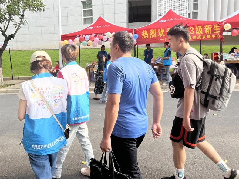 志愿者们身着统一的服装,时刻保持认真的工作态度,审阅和提交材料、搬运行李、细心解答新生们的问题,引领他们踏入数科院的各个场所,让新生们感到暖心。就算夕阳西下,天色渐暗,志愿者们依然坚守在岗位上,用自己的行动传递了数科院作为大家庭的温暖与力量。