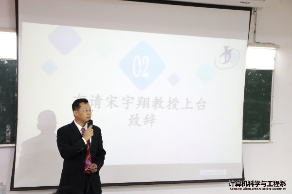 宋宇翔教授提到我校提倡“一体两翼”,其中一翼是培养学生计算机能力,并提出改变传统思路,加强校体合作,推动产教结合。并强调我校即将创办百度云学院,并嵌入大数据、云计算等课程到培养方案中,加强同学创新创业能力的训练。同时提出举办“以赛促学,以赛促教”的“粤嵌杯”竞赛。